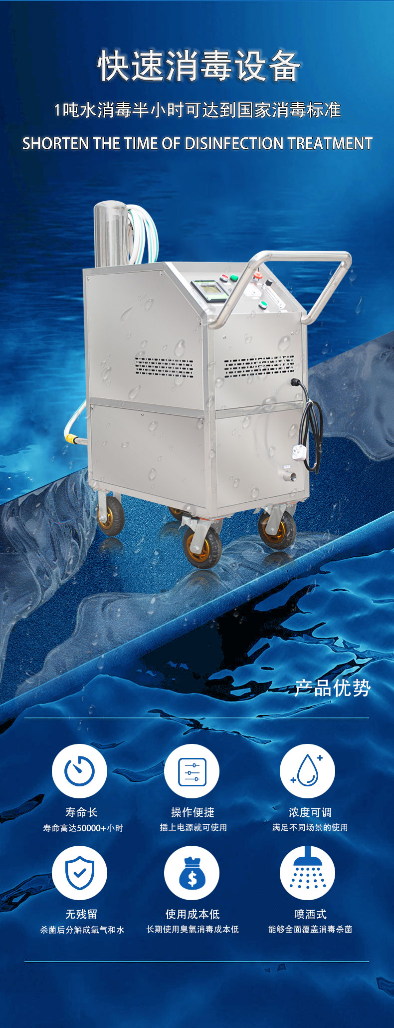 ◆設(shè)備配備專用防回水筒,防止水回流到臭氧系統(tǒng)管道里導(dǎo)致機(jī)器損壞