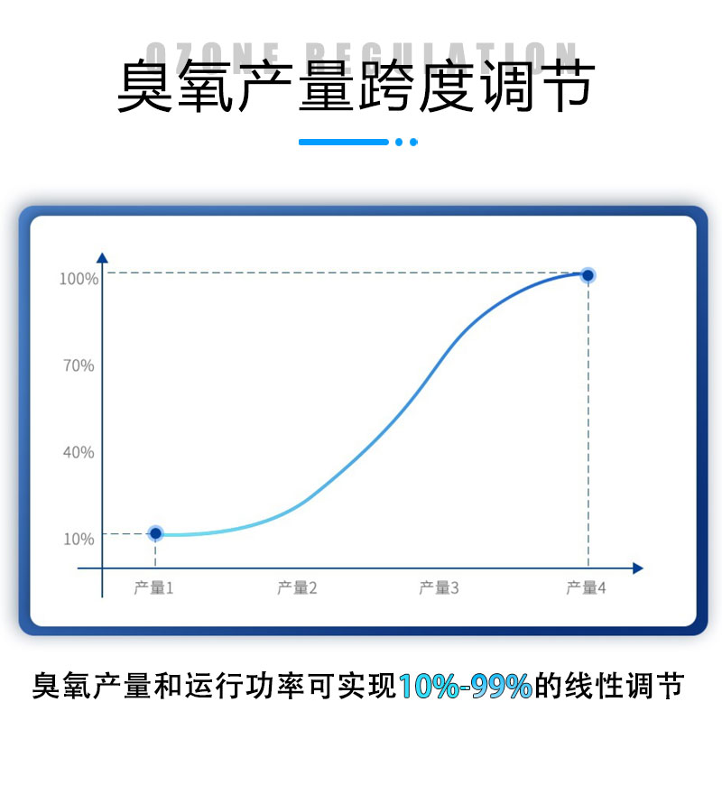 ◆臭氧產(chǎn)量濃度可調(diào)節(jié),臭氧濃度高,產(chǎn)量大,設(shè)備性能更穩(wěn)定壽命更久