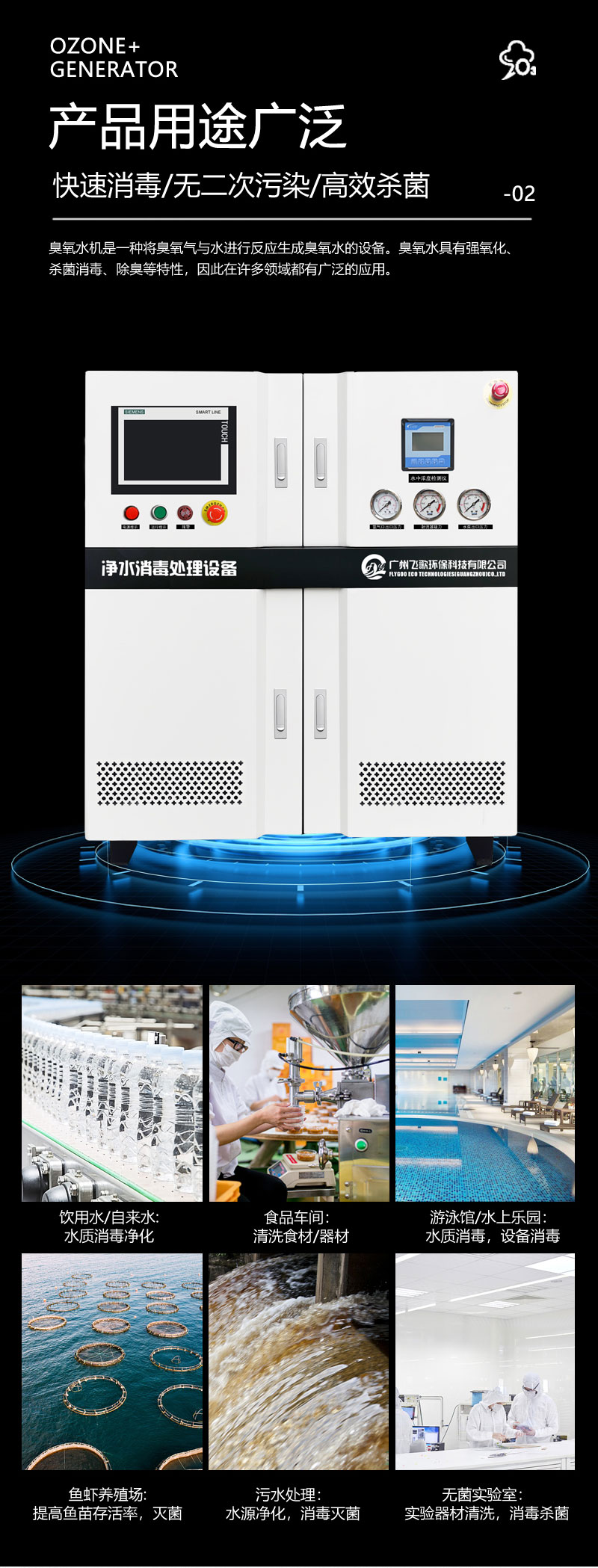 1. 食品飲料企業(yè),清洗消毒礦泉水、純凈水、自來水等殺菌消毒;