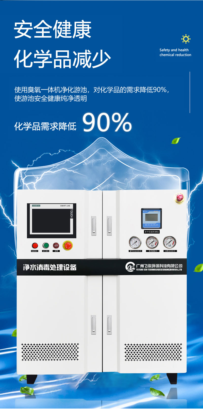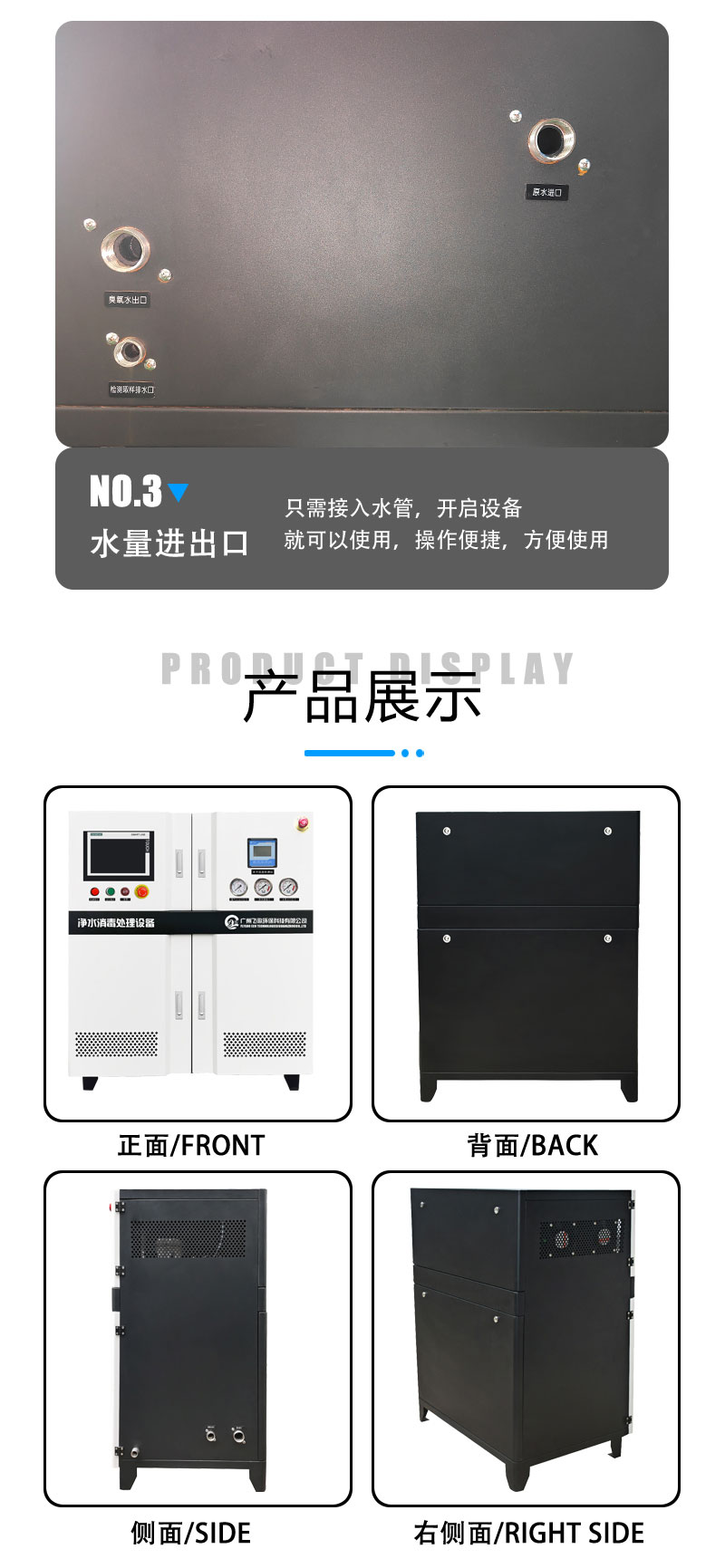 4. 設(shè)備配備專用防回水筒,防止水回流到臭氧系統(tǒng)管道里導(dǎo)致機(jī)器損壞;