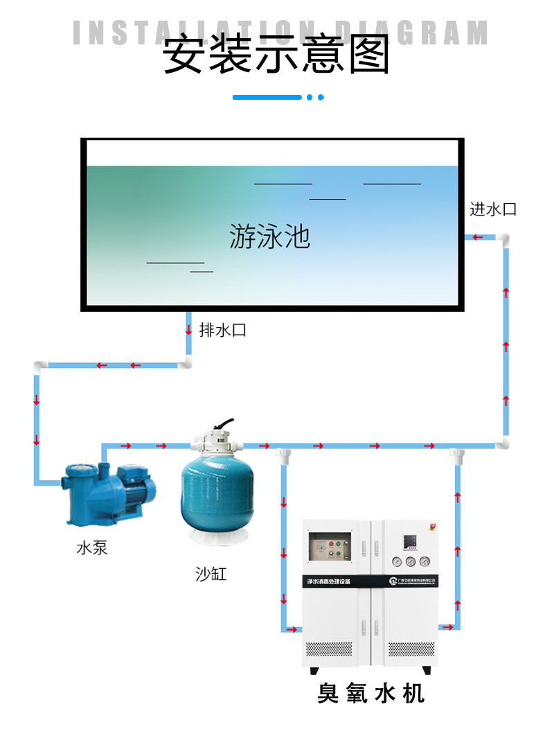 5. 泳池、庫房、小區(qū)供水等用臭氧水殺菌消毒;