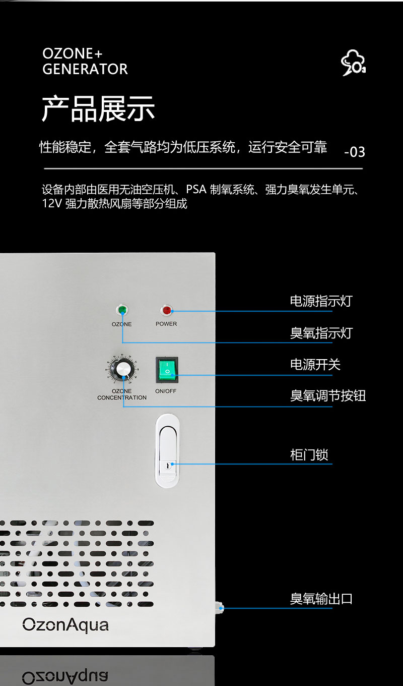 ◆不銹鋼噴漆,耐腐材質(zhì)使用壽命長、內(nèi)置制氧系統(tǒng)、強(qiáng)力散熱風(fēng)扇提高產(chǎn)品使用壽命
